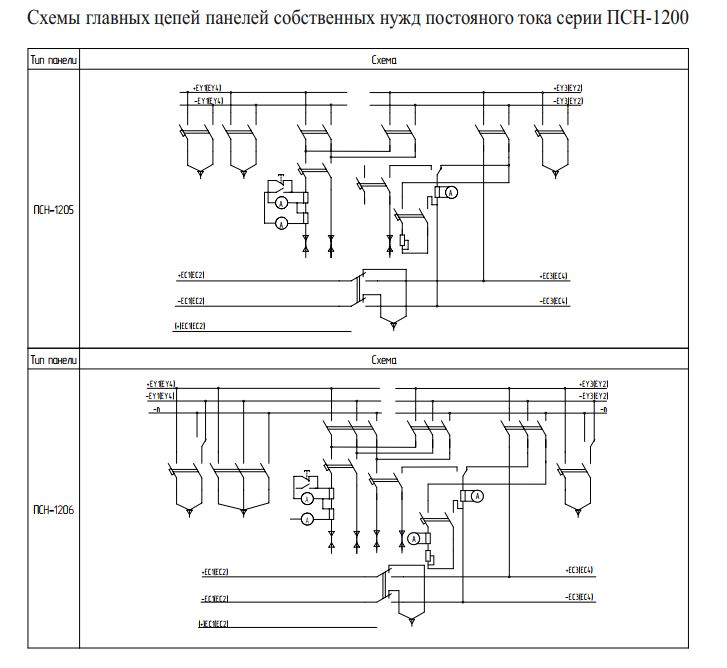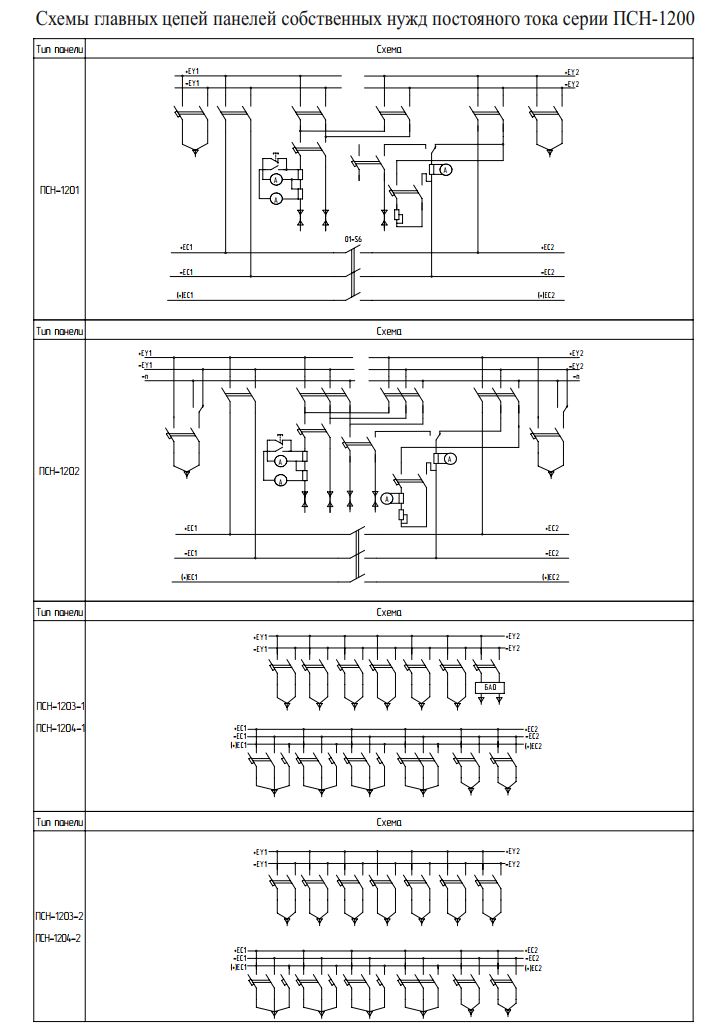 | ПСН-1204-2 | Панель ліній, що відходять, для підстанцій з однією акумуляторною батареєю при n>108 елементів без блоку аварійного освітлення |