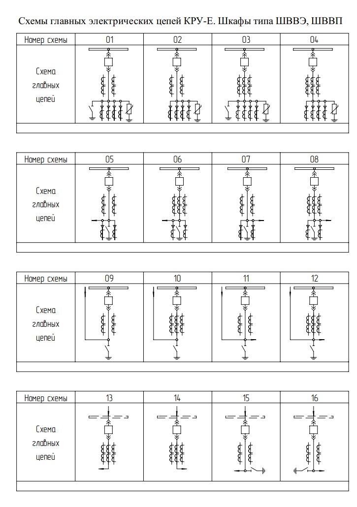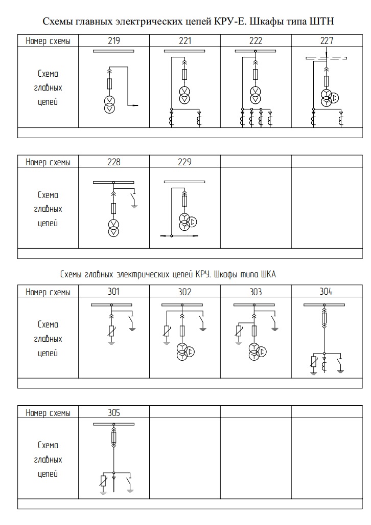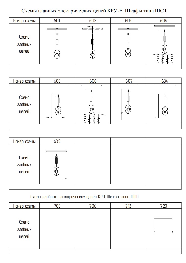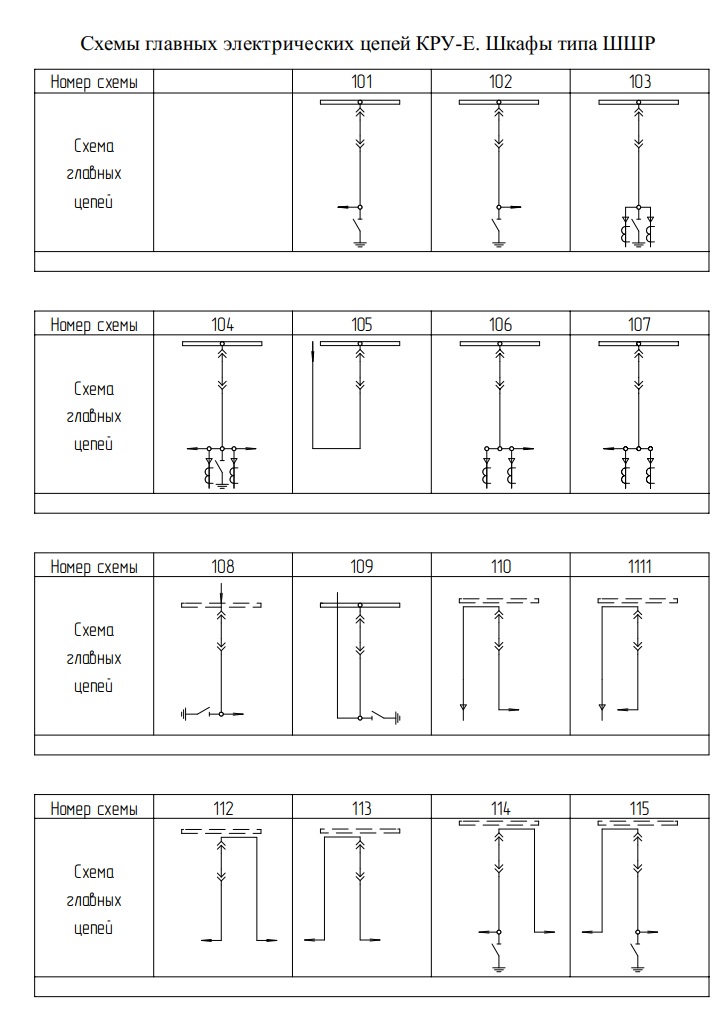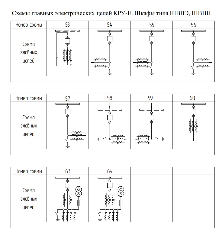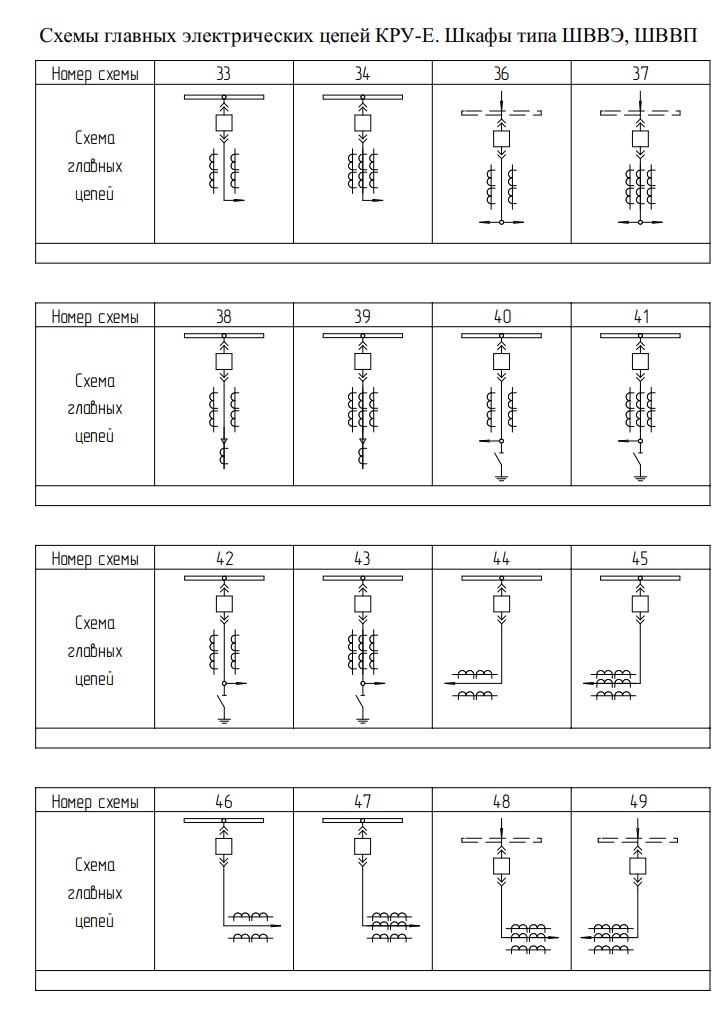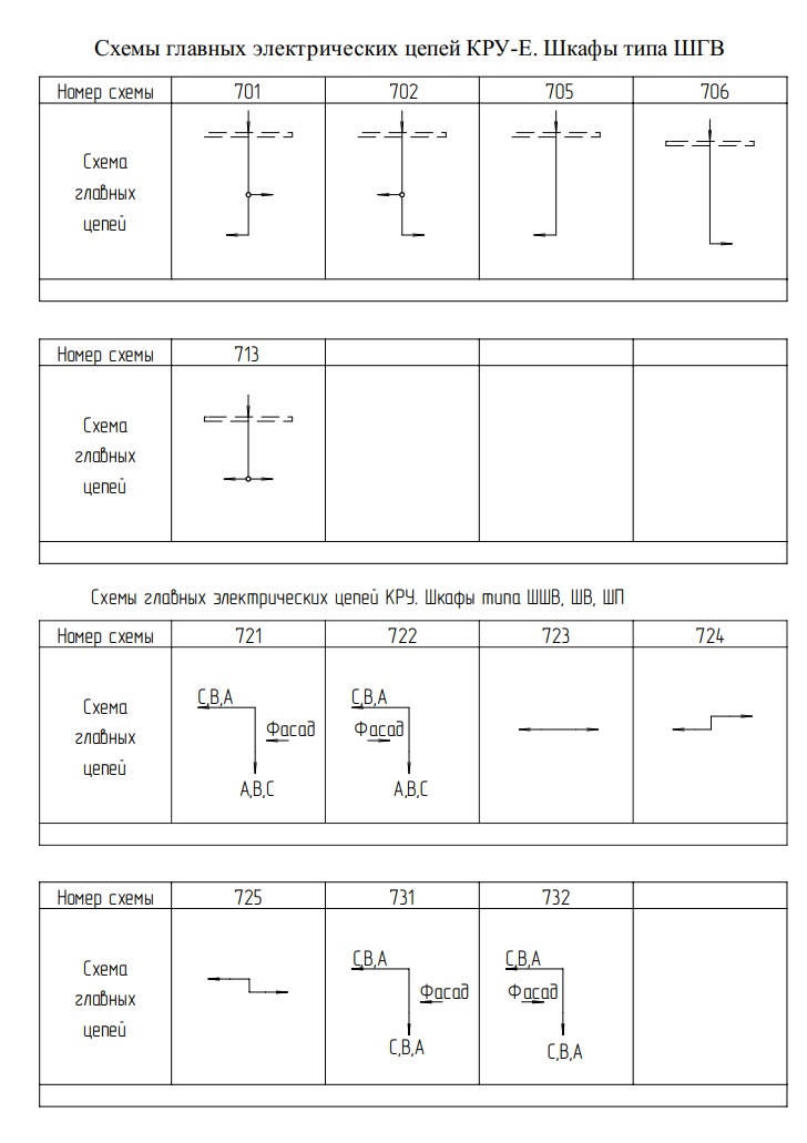 Буквенное обозначение шкафа КРУ Типоисполнениее шкафа КРУ2-10 № схем главных цепей