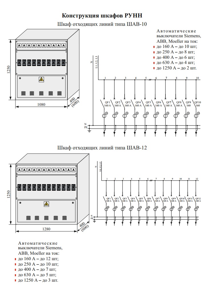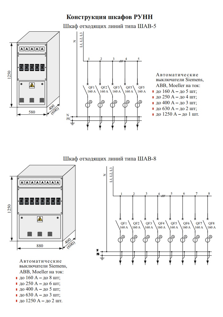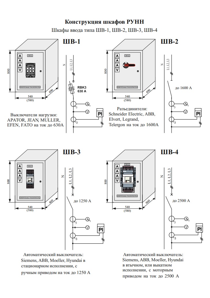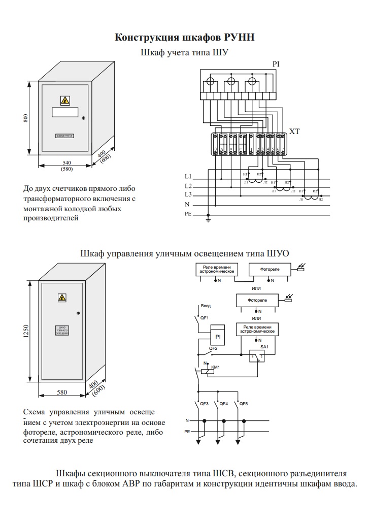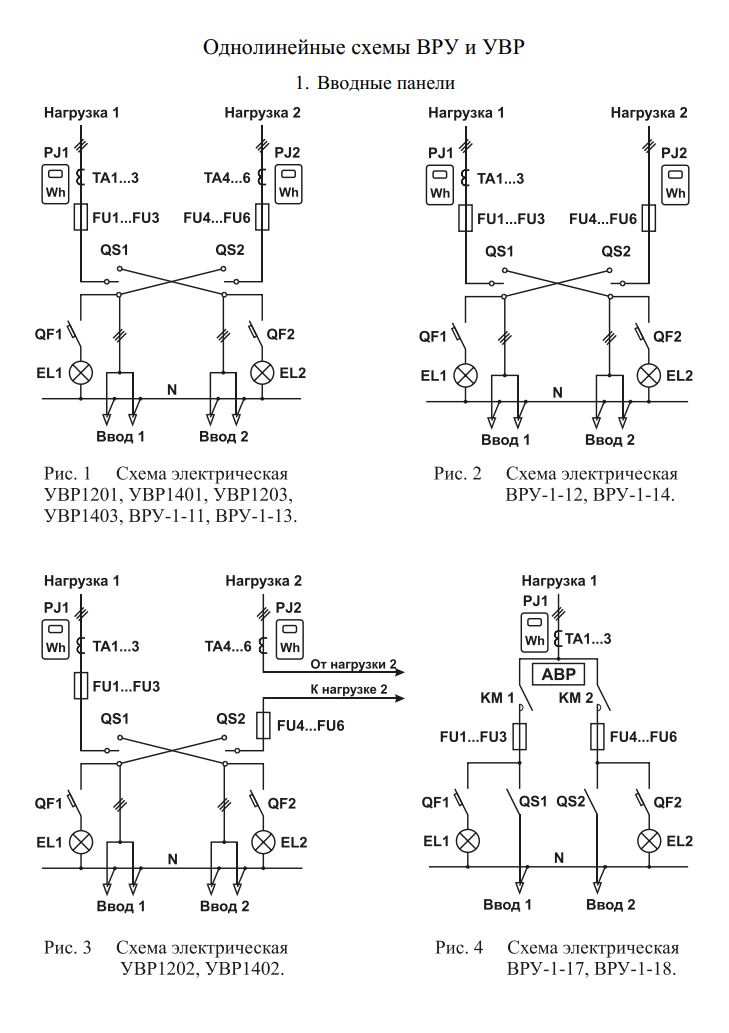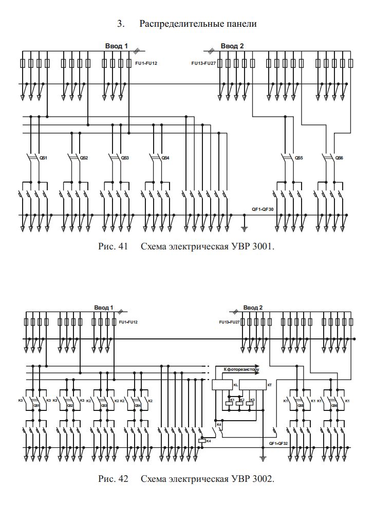 Устройства вводно-распределительные ВРУ, УВР предназначены (в зависимости от типа панели) для приема, распределения и учета электрической энергии трехфазного переменного тока напряжением 380/220 В, частотой 50 Гц с глухо-заземленной нейтралью, а также для защиты линий от перегрузок и токов короткого замыкания.