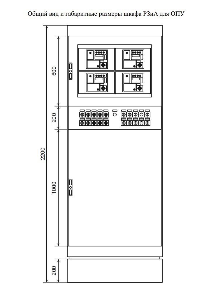 На передніх дверях або фальшпанелі шаф РЗіА (залежно від категорії розміщення) розташовано апаратуру керування та сигналізації.