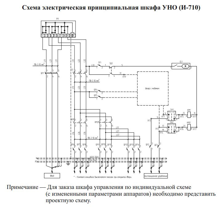 Шафа збирається за стандартною схемою (это должна быть гиперссылка на схему в пдф-е), яка уточнюється Замовником за кожним окремим проектом (номінальний струм, система заземлення, кількість ліній в кожній групі, тощо)
